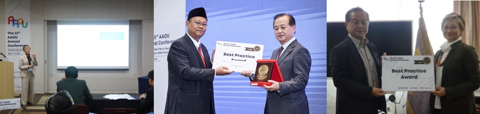 Professor Nakatani made a presentation on "The IBT trials for 200,000 examinations," reporting on a case study of Internet-Based Testing (IBT) introduced at OUJ in 2022. She focused particularly on various innovative efforts to reduce the server load and demonstrated the results with quantitative data. She was awarded a Gold Medal in the AAOU Best Practice Awards.